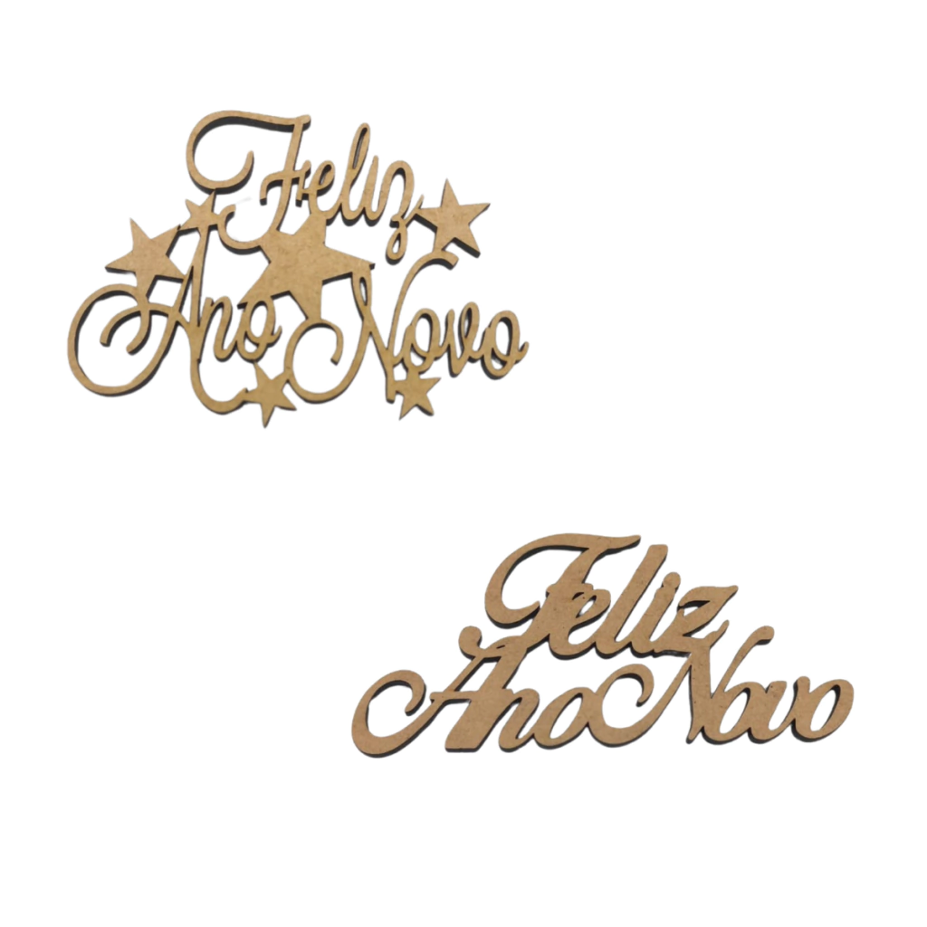 Celebre a virada do ano com criatividade e estilo utilizando o Aplique MDF Natalino Frase Feliz Ano Novo! Disponível em dois modelos, esse item decorativo é ideal para projetos artesanais de fim de ano, como cartões, guirlandas, lembranças, embalagens e decorações de festas. O modelo Nº1 apresenta a frase “Feliz Ano Novo” vazada com estrelas lisas aplicadas, enquanto o modelo Nº2 traz apenas a frase vazada, com acabamento limpo e elegante. Fabricados em MDF cru de 2,5mm de espessura, os apliques são leves, resistentes e prontos para personalização com pintura, glitter, técnicas mistas e muito mais.