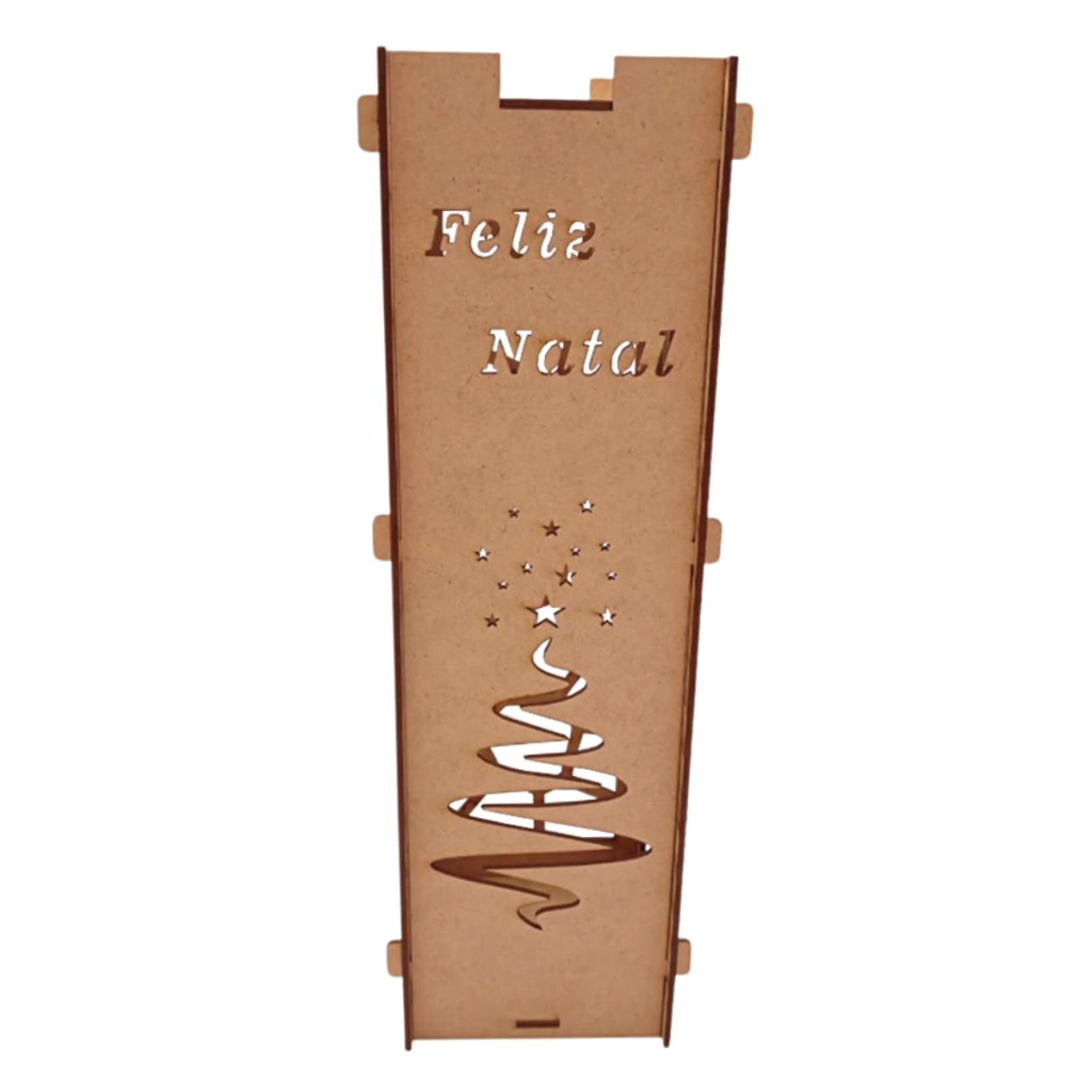 Surpreenda neste Natal com uma embalagem especial e sofisticada! A Caixa Porta Vinho MDF Natal com Arabesco é o toque final ideal para presentear com charme e personalidade. Fabricada em MDF cru 2,5mm, ela possui acabamento vazado com lindos arabescos e a frase "Feliz Natal" na parte frontal, além de uma árvore de Natal riscada com detalhes em estrelinhas. Seu design elegante e artesanal é perfeito para quem busca unir funcionalidade e estética em uma única peça. A caixa acomoda a garrafa na posição vertical e possui tampa de encaixe firme, ideal para proteger e valorizar o presente. É uma excelente opção para personalização com pintura, laços ou aplicação de outros materiais decorativos. Ideal para artesãos, lojas de presentes, empresas que desejam presentear clientes ou para montar kits de Natal diferenciados.