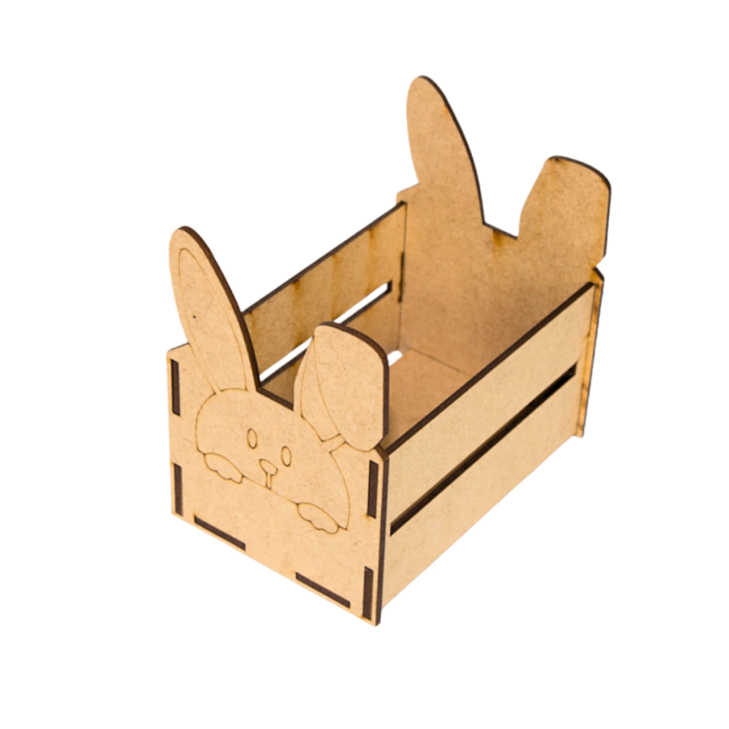 Transforme sua decoração de Páscoa com o Caixote MDF Cru Decorativo Coelho de Páscoa. Feito em MDF cru de 2,5mm, este caixote combina simplicidade e elegância. Com duas laterais decoradas com a cabeça de um coelho e patas desenhadas e outras duas com aberturas pequenas, ele é ideal para organizar, presentear ou decorar mesas temáticas. Sua aparência neutra permite personalização criativa com tintas ou acabamentos.