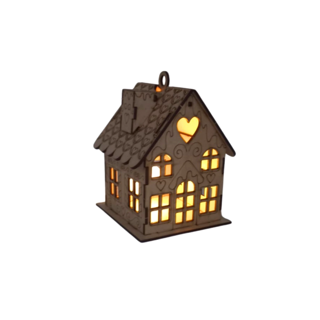 Transforme seu Natal com o encantador Enfeite MDF Pendente Casa de Natal com Corações. Feita em MDF cru 2,5mm, esta peça traz um design clássico e acolhedor, com o telhado decorado com corações gravados, chaminé, e portas e janelas abertas. A parte de trás conta com uma janela maior, permitindo que você insira uma vela LED (não inclusa) para criar o encantador efeito de uma casa iluminada. Além disso, uma argola na parte superior permite pendurar facilmente a peça, tornando-a perfeita para enfeitar sua árvore de Natal, mesas ou outros espaços. Uma decoração única que traz luz e aconchego para o ambiente, ideal para quem busca personalizar sua celebração com estilo.