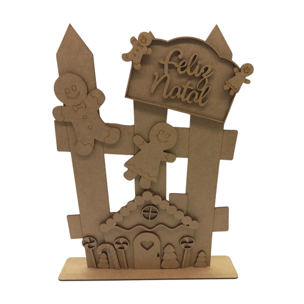 O Enfeite MDF Cerca Feliz Natal com Biscoitos e Casinha é uma peça encantadora e cheia de personalidade para compor decorações natalinas com um toque artesanal e lúdico. Com 32x25cm, o conjunto traz uma cerca decorativa sobre base, contendo diversos apliques que remetem ao universo doce do Natal.