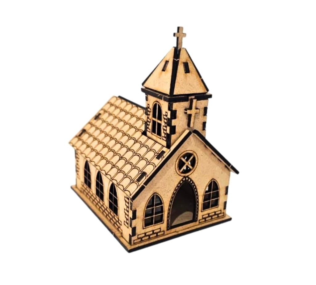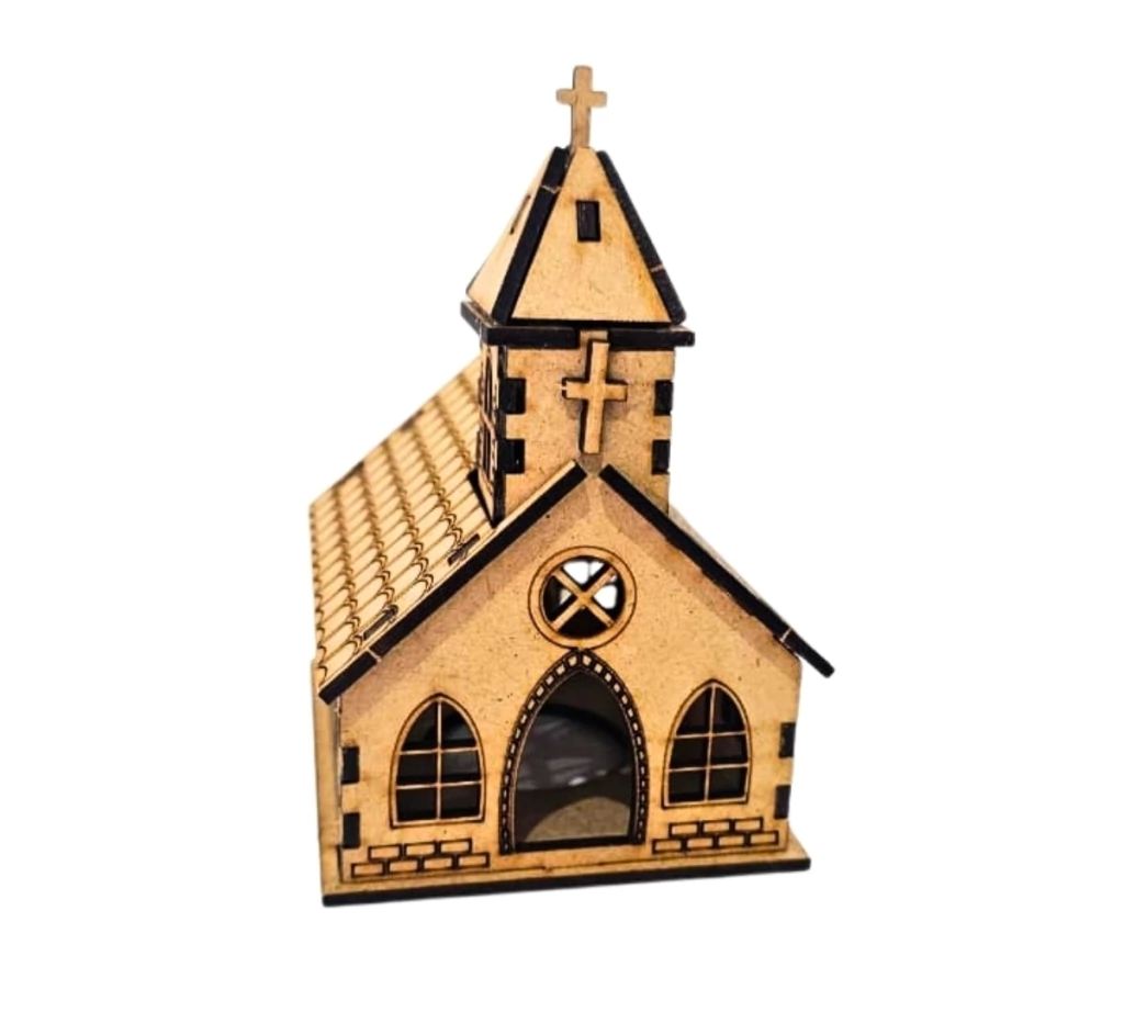 A Igreja Natalina em MDF cru é uma peça encantadora que traz o clima natalino para qualquer ambiente. Com design detalhado, corte a laser preciso e acabamento delicado, esta mini igreja é perfeita para quem deseja uma decoração diferenciada e personalizada. Produzida em MDF cru de 2,5mm, ela é enviada desmontada, o que facilita tanto o transporte quanto o trabalho artesanal.