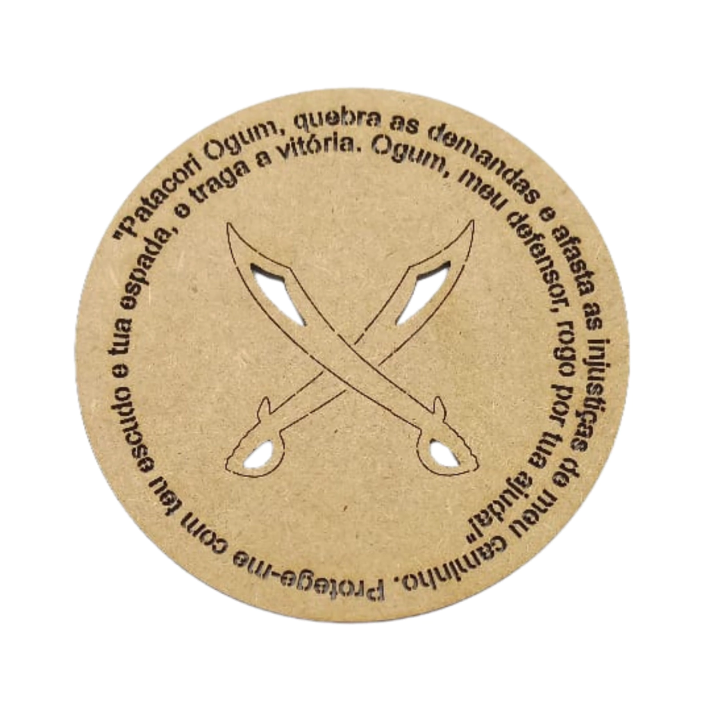 A Mandala MDF Espada de Ogum é um poderoso símbolo de proteção, força e justiça, ideal para devotos e praticantes das religiões de matriz africana. Confeccionada em MDF cru de 2,5mm, essa mandala redonda traz um design vazado, destacando no centro a emblemática Espada de Ogum, além da oração: