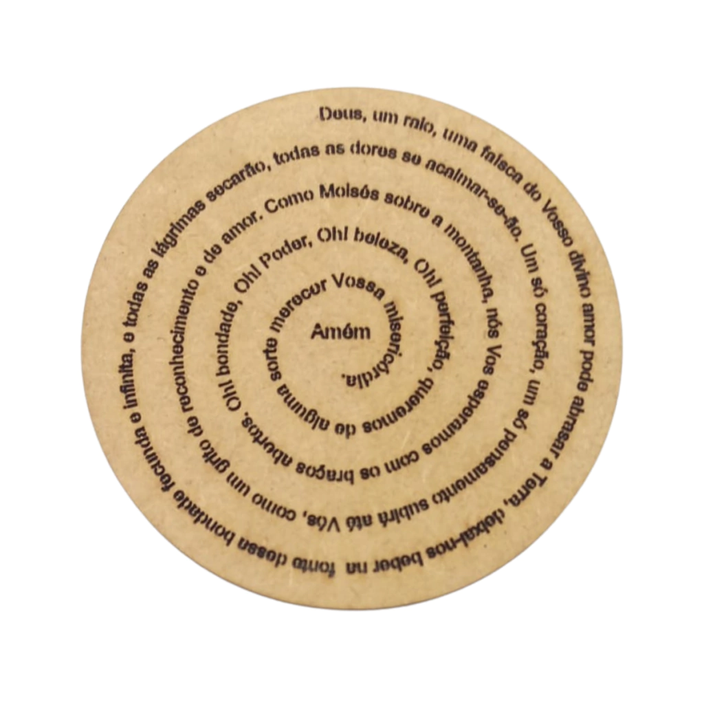 A Mandala MDF Oração Prece de Cáritas é uma peça de decoração religiosa que simboliza fé, amor e caridade. Fabricada em MDF cru de 2,5mm, essa mandala apresenta um design redondo e vazado, com a palavra "Amém" no centro e um trecho da emocionante Prece de Cáritas gravado ao redor.