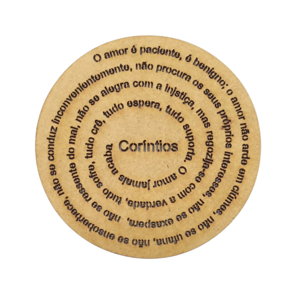A Mandala MDF Oração Versículo Bíblico Coríntios é uma peça decorativa inspiradora, ideal para quem busca fortalecer sua fé e encher seu ambiente com mensagens de amor e esperança. Com um design minimalista e sofisticado, essa mandala redonda possui a palavra "Coríntios" vazada no centro e, ao redor, o famoso versículo sobre o amor:
