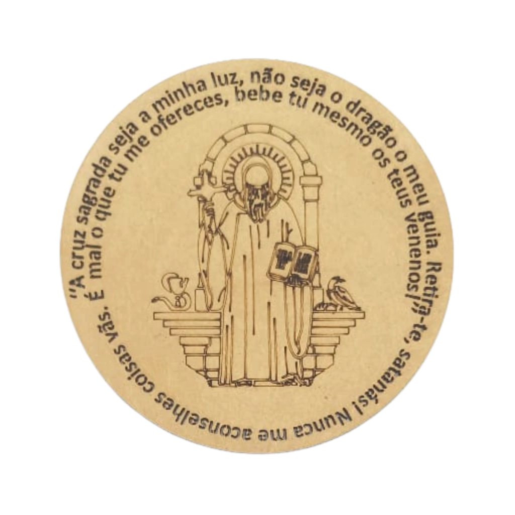 ✔ Design: Imagem de São Bento no centro e oração vazada ao redor
