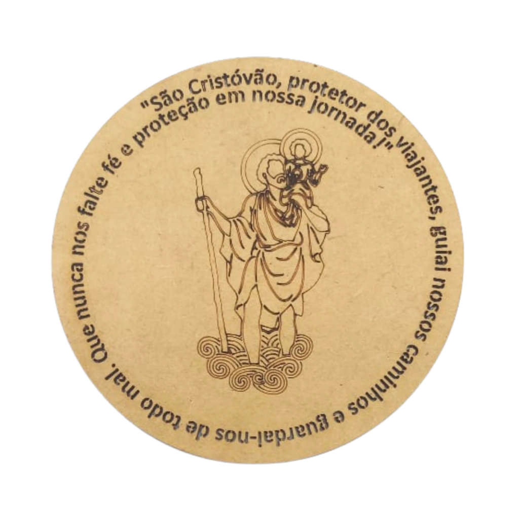 ✔ Design: Imagem de São Cristóvão no centro e oração vazada ao redor