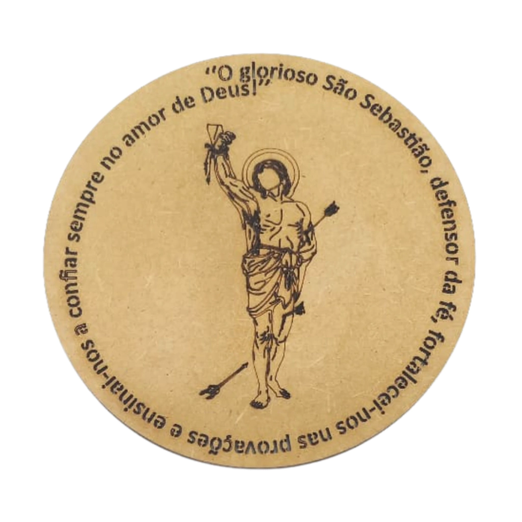 ✔ Design: Imagem de São Sebastião no centro e oração vazada ao redor