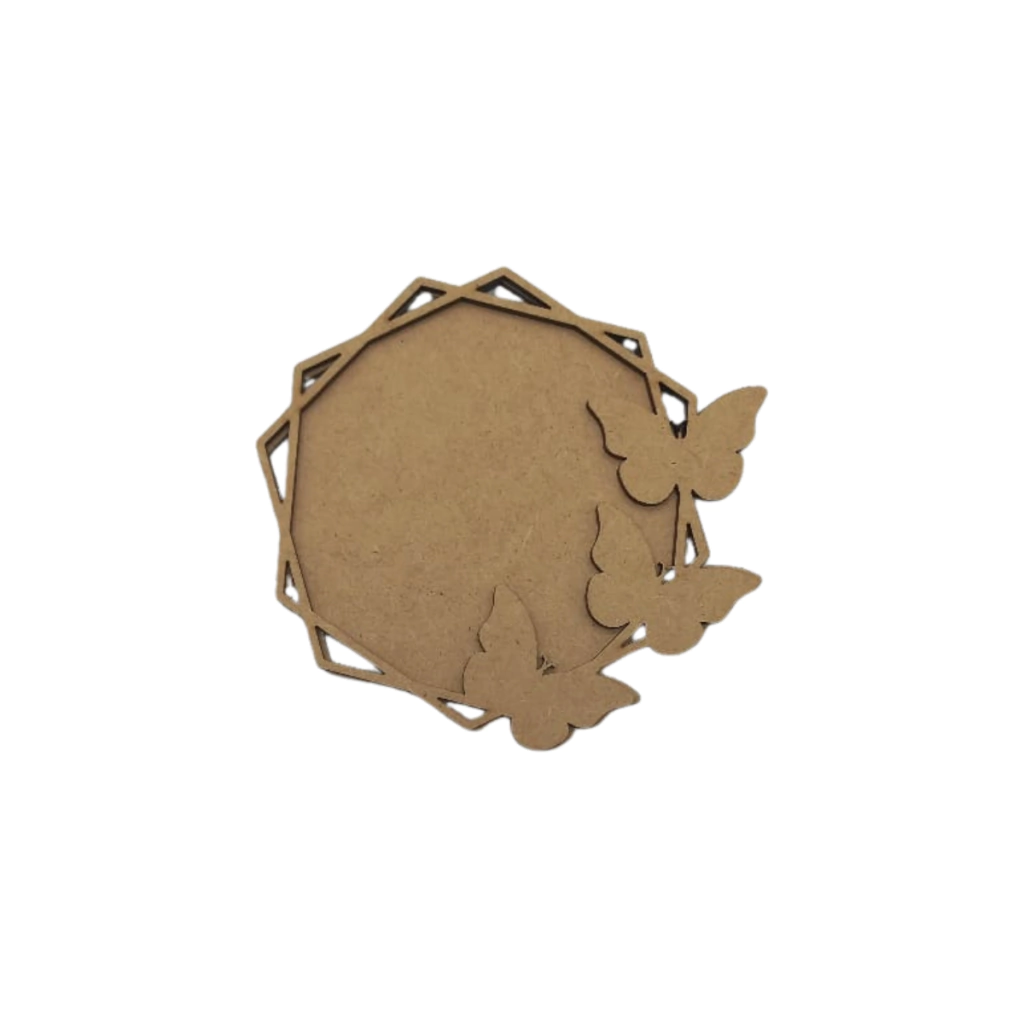 A Moldura Octogonal em MDF cru com borboletas é uma peça delicada e versátil que agrega charme e personalidade à sua decoração. Com design geométrico único, possui um fundo liso e borboletas aplicadas ao lado, criando um efeito 3D encantador.