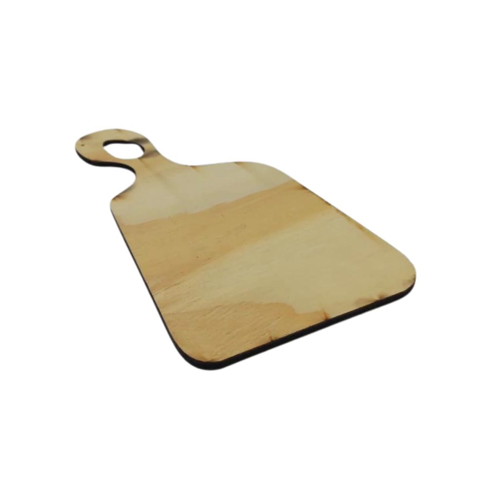 Produzida em compensado de pinus cru com 4mm de espessura, é leve, resistente e pronta para personalização. Seu acabamento liso permite a aplicação de pintura, colagem de frases, pátina e técnicas artesanais. O diferencial funcional está no furo retangular localizado no cabo, pensado para pendurar facilmente a peça ou amarrar fitas e laços decorativos.