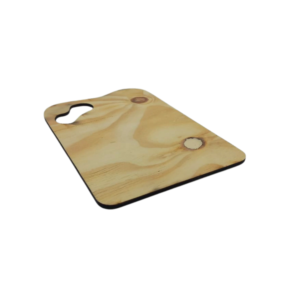 Produzida em compensado de pinus cru com 4mm de espessura, a placa é resistente, leve e apresenta acabamento liso, pronto para receber pintura, colagem, gravação ou outras técnicas de personalização. Na parte superior esquerda, há uma abertura funcional, ideal para segurar a peça com facilidade ou aplicar fitas e laços para uso decorativo.