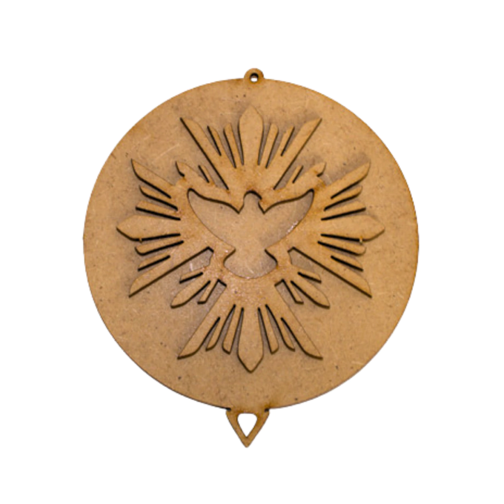 A Placa MDF Moldura Escapulário Espírito Santo para porta é uma peça charmosa e simbólica, ideal para quem deseja expressar fé e proteção através da decoração. Com 10cm de diâmetro, essa placa redonda é perfeita para ser pendurada em portas, oferecendo um toque espiritual e elegante ao ambiente. Seu diferencial está no aplique central em formato do Espírito Santo vazado, que confere um efeito 3D moderno e delicado. Produzida em MDF cru de 2,5mm, é ideal tanto para quem deseja utilizar em sua forma natural quanto para quem gosta de personalizar com tinta, verniz, técnicas artesanais ou decoupagem.