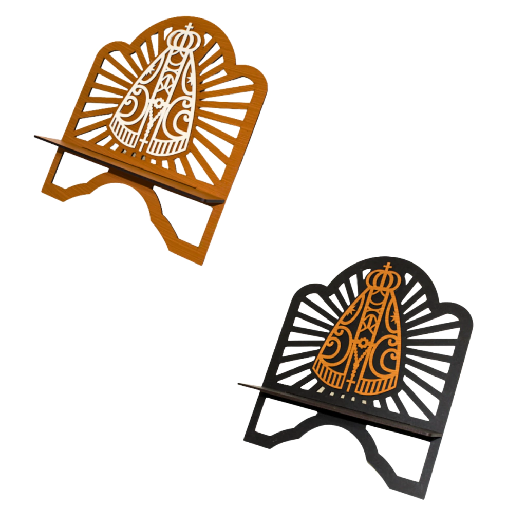 O Porta Bíblia MDF com Nossa Senhora 3D Decorativa é uma peça que une fé, arte e sofisticação. Ideal para ambientes religiosos, altares e decorações com temática cristã, este suporte foi desenvolvido em MDF de 4mm com pintura nas tonalidades Preta e Tabaco. O destaque principal é a imagem da Nossa Senhora Aparecida em efeito 3D no centro da peça, enriquecida com raios vazados ao redor, transmitindo espiritualidade e beleza ao ambiente.