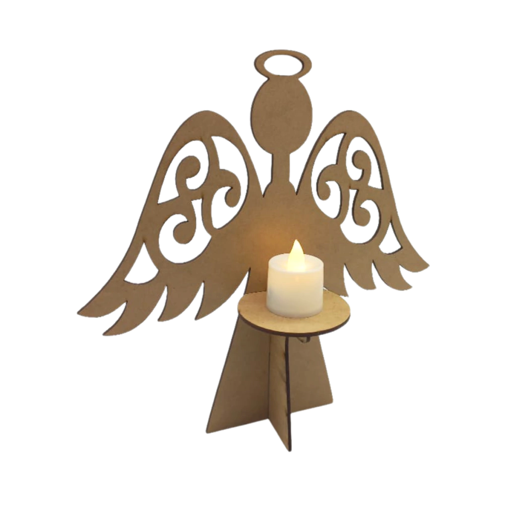Este encantador porta vela em MDF da Rodolfo Laser é ideal para decorar ambientes com um toque espiritual e acolhedor durante o Natal. Com design delicado na forma de um anjo com auréola e asas vazadas, é perfeito para quem busca uma peça simbólica, funcional e ao mesmo tempo decorativa. Seu suporte frontal acomoda uma vela LED, tornando-o seguro para uso em ambientes internos, como salas, quartos, vitrines ou mesas temáticas. Indicado para artesãos, lojistas de decoração e amantes do Natal que desejam personalizar ou revender peças únicas com acabamento artesanal.