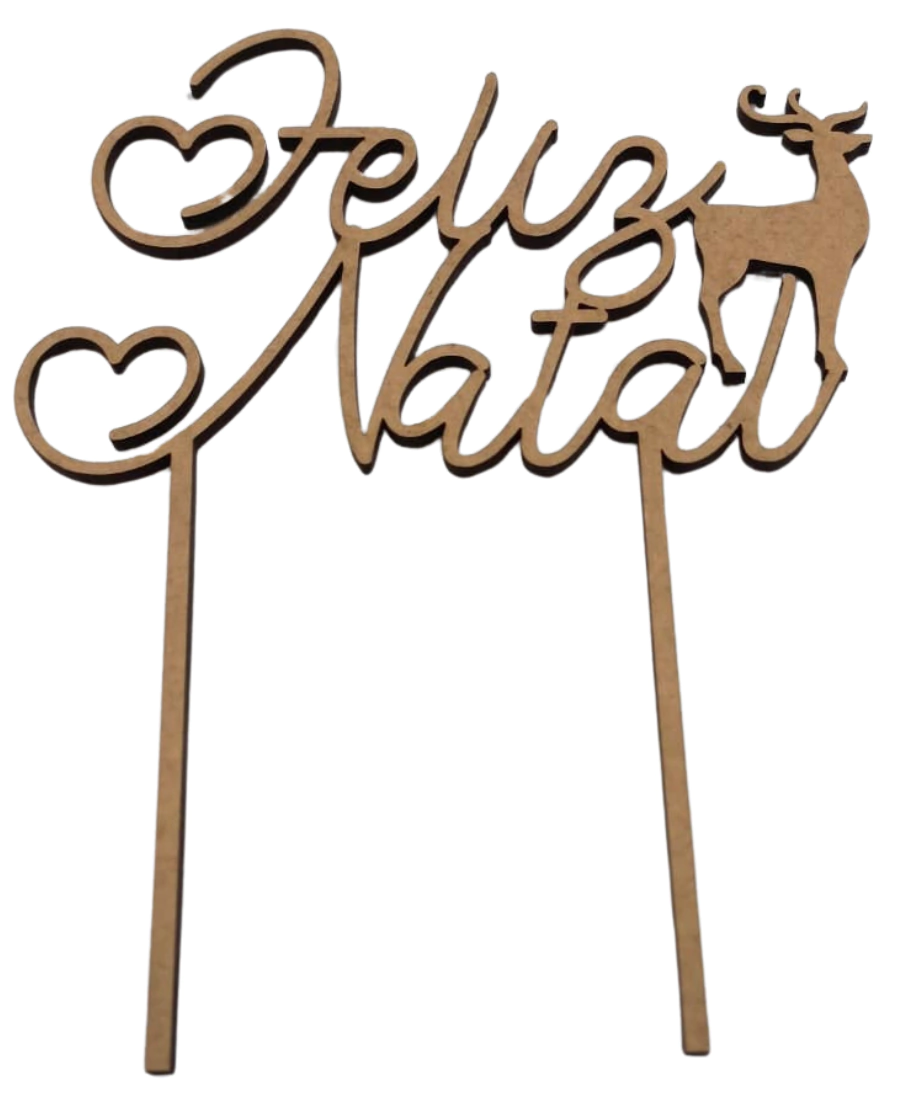 O Topo de Bolo MDF Cru Natalino “Feliz Natal” é o enfeite ideal para trazer um toque especial à decoração de bolos temáticos de fim de ano. Com a frase “Feliz Natal” vazada em diversos estilos, esse topo é fabricado em MDF cru de 2,5mm com corte a laser preciso e acabamento artesanal. Todas as variações incluem dois suportes finos na base para fixação direta no bolo, garantindo estabilidade e praticidade.